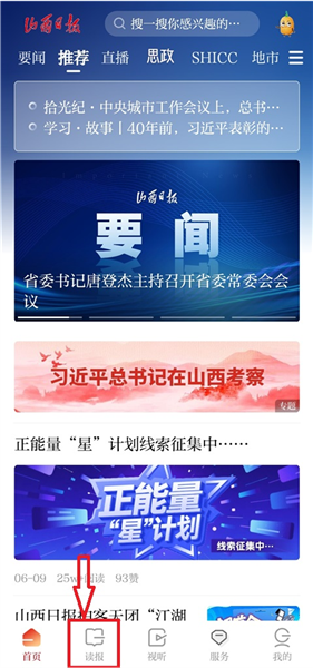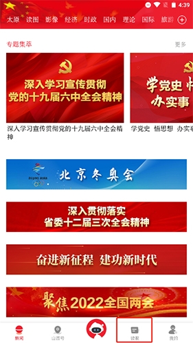 首先我們點擊下方的【讀報】按鈕,就能進入到【讀報】界面了。