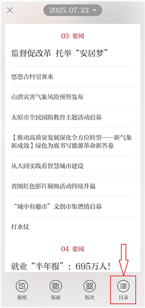 點擊左下角的【目錄】按鈕,還能直觀地了解當期數字報的大致內容。