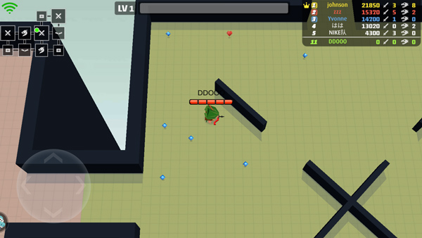 每次角色升級,玩家都得從三個隨機給出的技能里挑一個來增強自己,像“穿墻”“追蹤箭”“多方向攻擊”這些都有可能出現。這樣的設定讓每一局游戲都有著不同的走向——說不定你能抽到“激光槍+彈射”的搭配,一下子就變得所向披靡;但也可能連續碰到沒什么用的技能,最后只能成為別人的墊腳石。