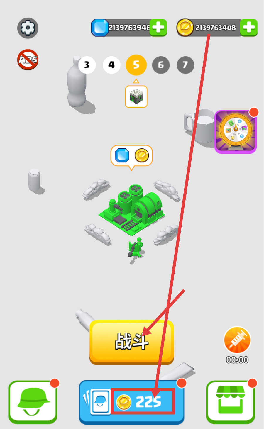 在點擊【戰斗】按鈕之前,你可以消耗【225金幣】來提升戰力,建議合理規劃資源,為關卡戰斗提前做好準備。