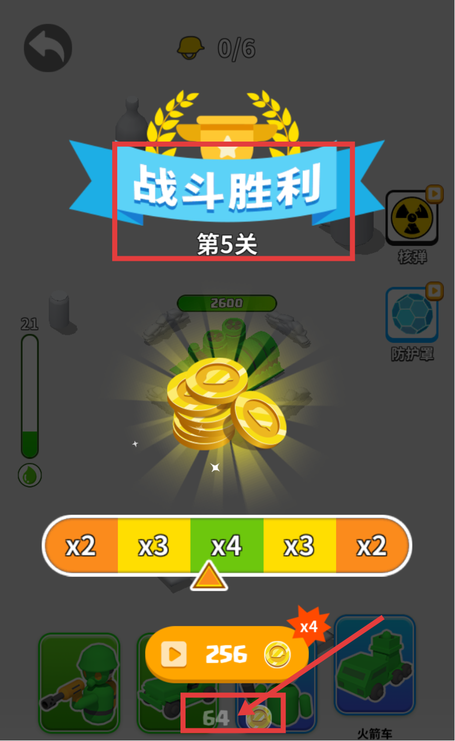 在完成【戰斗勝利-第5關】的挑戰后,即可領取【金幣-64】的獎勵,這些資源可以積攢起來,用于后續的單位升級或是資源獲取環節。