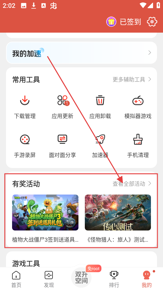進入“我的”頁面后,找到【有獎活動】板塊,點擊“查看全部活動”,即可瀏覽所有有獎活動。