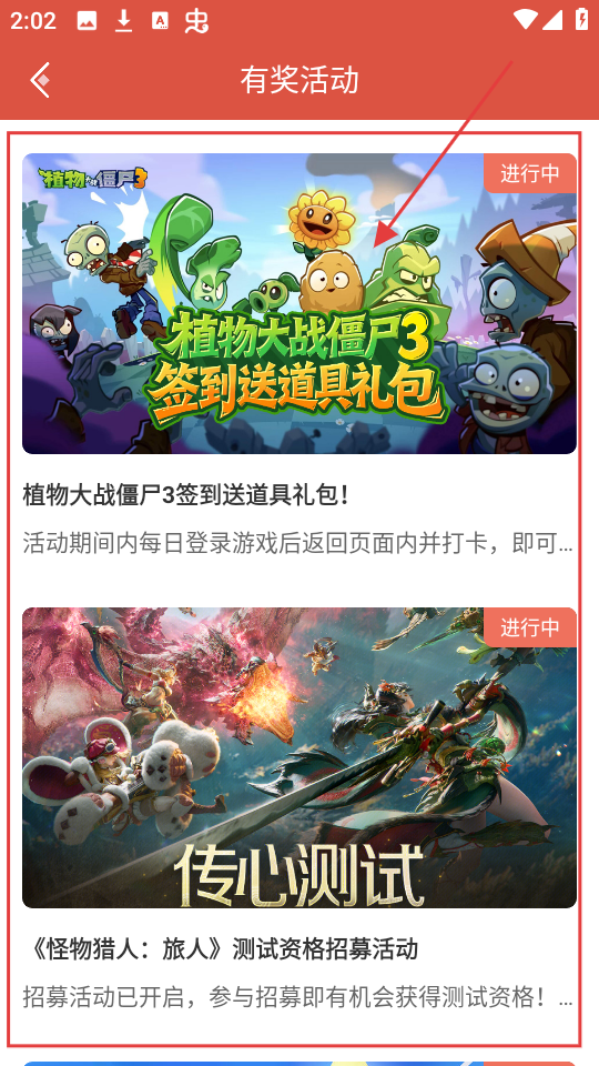 進入有獎活動頁面后,能看到“植物大戰僵尸3簽到送道具禮包”等各類活動,選擇想參與的活動點擊進入即可。