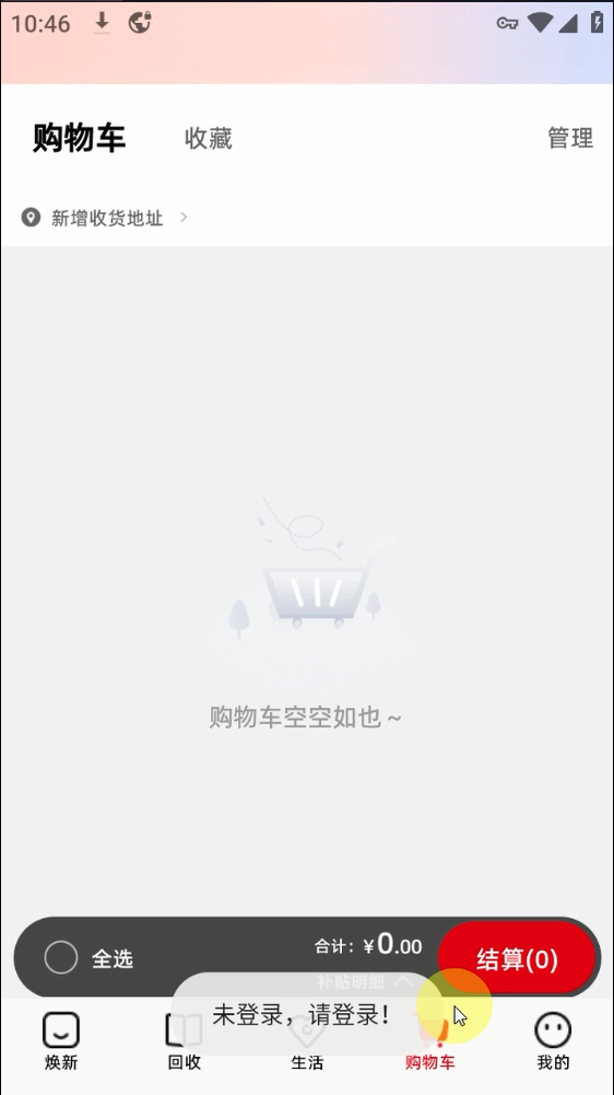 首先打開煥新生活后點擊【我的】--【點擊登錄】