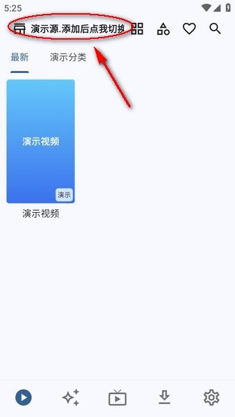 添加成功后,返回首頁(yè)并點(diǎn)擊“演示源.添加后點(diǎn)我切換”。