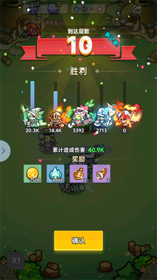 勝利之后,能清晰看到每個英雄的傷害數值,還有通關獎勵。