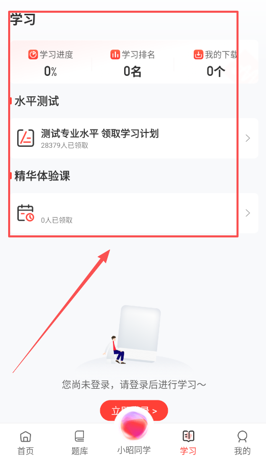 學習頁面會清晰呈現你的進度與排名,未登錄狀態下會彈出登錄提示,你可以據此合理規劃后續復習安排,讓備考過程更具條理。