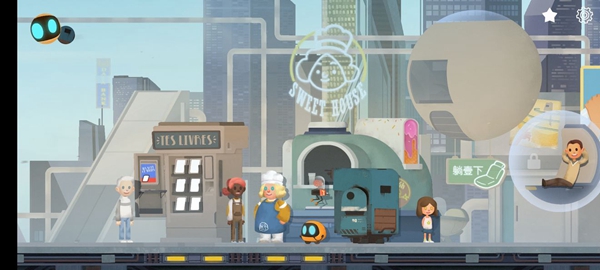 第一關(guān)的流程是這樣的:進(jìn)入大都市后,先往最右邊走,那里有一扇門(mén),試著打開(kāi)會(huì)發(fā)現(xiàn)打不開(kāi)。這時(shí)候返回去找那個(gè)待在球球里的人,他就會(huì)提出需求,想要關(guān)于貓的雜志和冰淇淋。