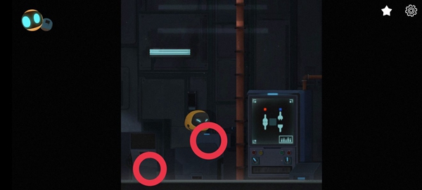 第三關(guān)需要關(guān)閉電源,按照?qǐng)D一的指示關(guān)掉這個(gè)位置的電源即可。腳下踩著的箱子是從左下角畫(huà)圈的地方拿的(截圖時(shí)這邊的電源已經(jīng)關(guān)閉了)。