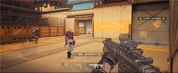 啟動《王牌戰士2》,進入游戲界面后會觸發新手引導流程。該游戲采用橫版第一人稱視角設計,操作方式為:通過點擊左側虛擬搖桿完成角色移動,滑動屏幕任意區域實現視角轉動。