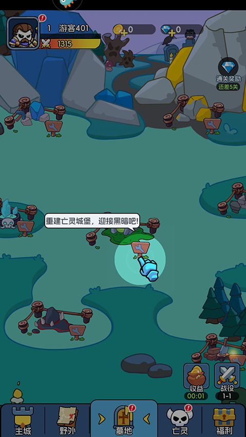 進(jìn)入游戲后先來建設(shè)我們的亡靈城堡。