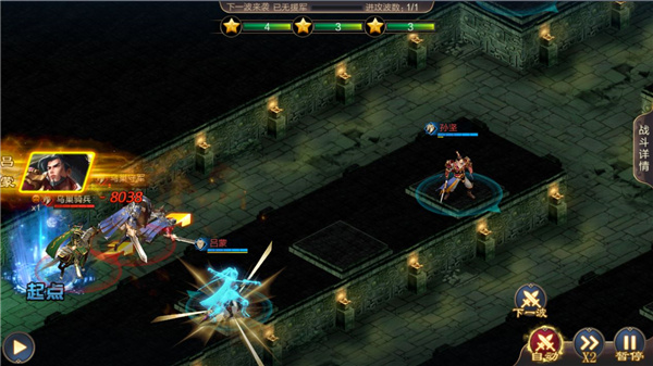 經典戰役(25級)。想必大家對早些年玩過的“塔防”類游戲模式還記憶猶新吧?我們的經典戰役就模擬了“塔防”規則,結合武將的技能與攻擊類型來阻擋NPC武將到達終點。在這個玩法里,高輸出類型的武將比較實用,輔助和治療類型的武將則不太適用。