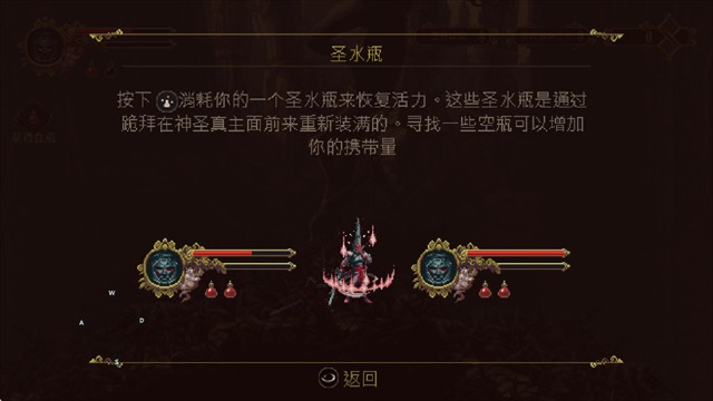 按下一個圣水瓶來恢復活力,這會消耗掉它。這些圣水瓶需要跪拜在神圣真主面前才能重新裝滿。尋找空瓶能夠讓你攜帶更多的圣水瓶。