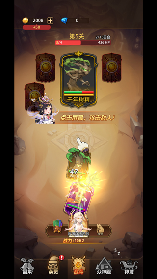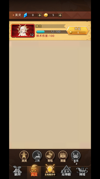 啟動《眾神之役》游戲,完成注冊登錄流程后進入游戲界面,該游戲采用點擊式自動戰斗模式。