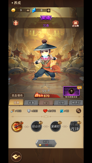 闖關可獲得金幣,用來提升角色等級戰力;