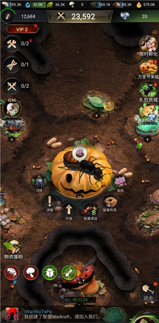 運用自己的智慧,打造屬于自己的家園,一同抵御外來蟻群的入侵。玩家需要建立自己的蟻群以擴張勢力范圍,通過獲取資源來增強自身的綜合實力,每一場挑戰都充滿了緊張與刺激!