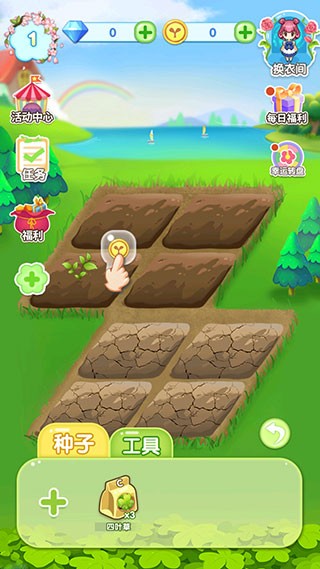 將四葉草種子拖動到對應的地塊上,完成【種植】。