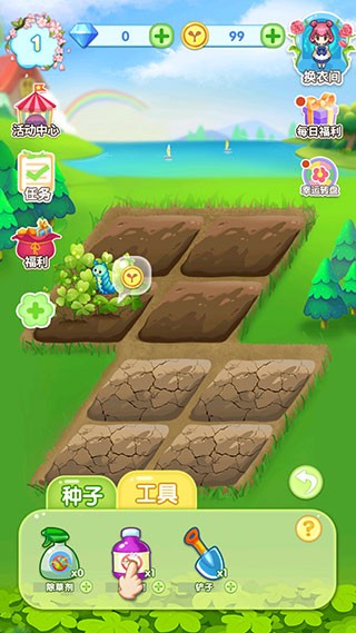然后點擊右下角的【播種】按鈕,開啟我們第一株魔法植物的種植之旅。