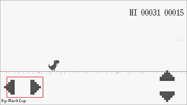 左下角的按鈕可控制小恐龍奔跑的速度;