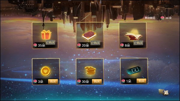 我們可以看到已經達成了無限鮮花的效果,還能對自己所需的道具執行購買操作。