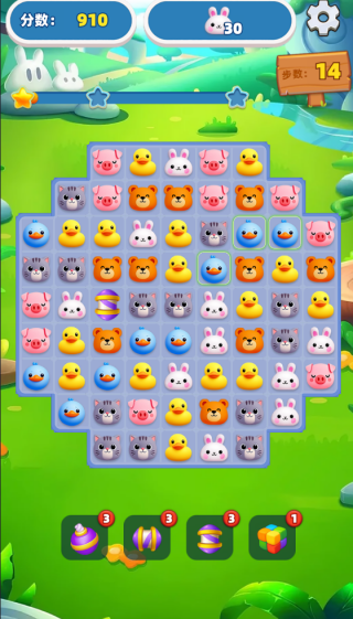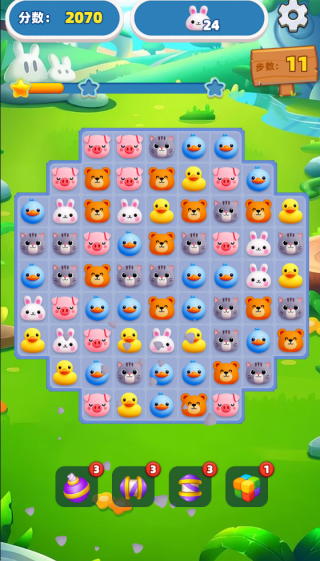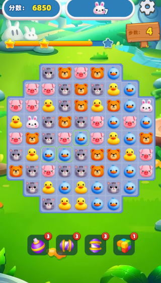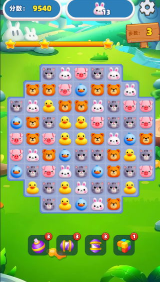 需在規(guī)定步數(shù)內(nèi)達(dá)成關(guān)卡目標(biāo),比如消除指定動(dòng)物、收集各類道具等。