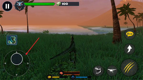 2、游戲的左下角搖桿能夠直接控制左恐龍移動,操作起來特別的輕松。