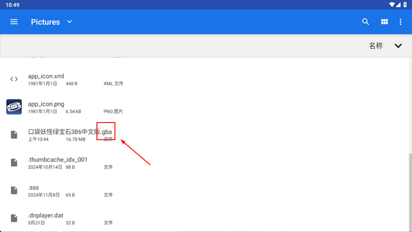 接下來,玩家需在手機文件夾中找到要導入的gba游戲文件(后綴為.gba,需自行準備)。