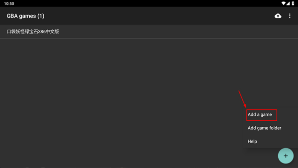 首先啟動GBA模擬器,找到右下角的加號按鈕并點擊,接著選擇“Add a game”選項來添加游戲。