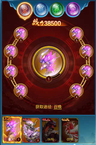 游戲里的御魂存在四種屬性,即炎、冰、毒、雷,每種屬性依據品質還能劃分為上品、極品、仙品與神品,玩家可以借助激活和進階御魂來增強戰力,而御魂能夠通過召喚、開啟秘寶、宗門祭壇、奇遇等途徑獲取。