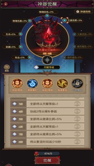 消耗對應(yīng)的神器覺醒道具可以對神器進行覺醒升階。