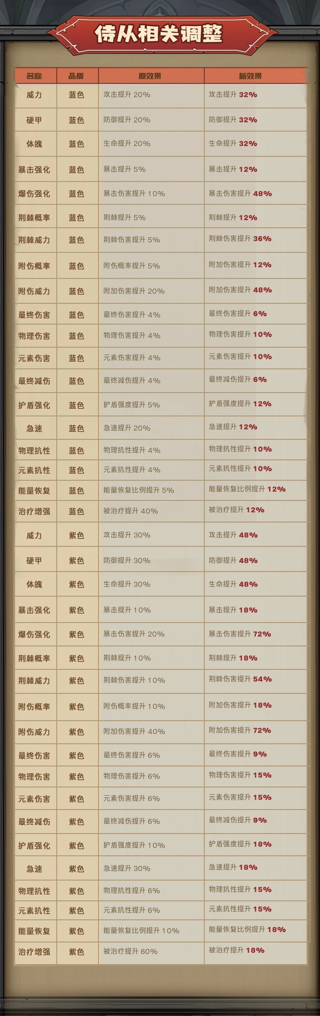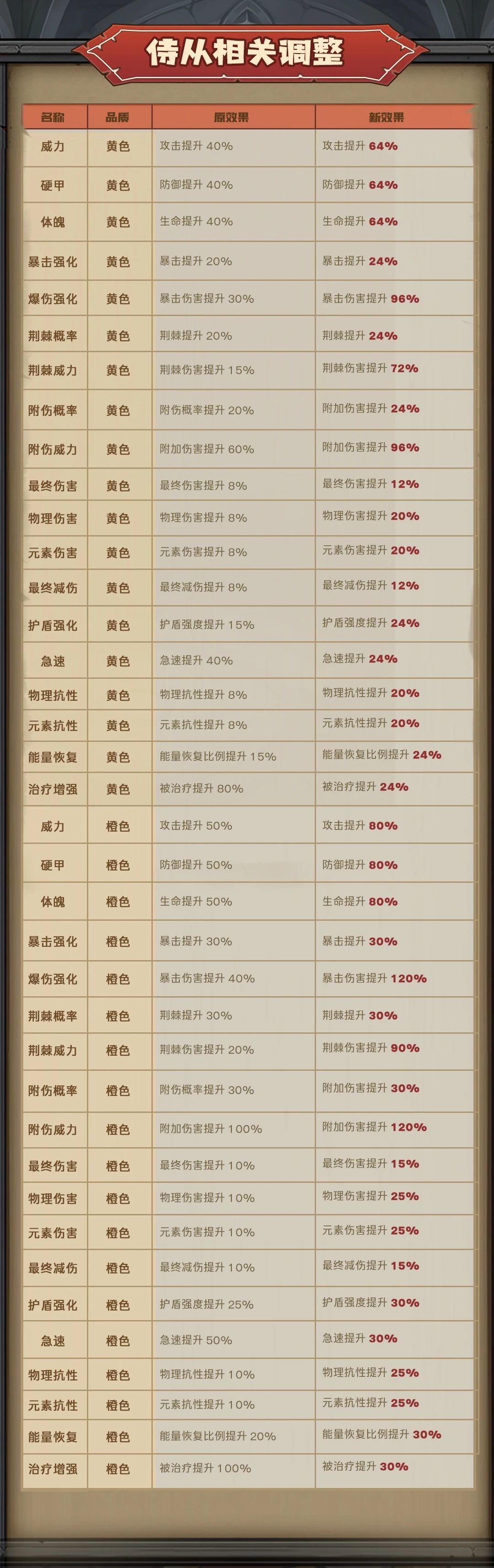 三、侍從天賦調(diào)整一覽