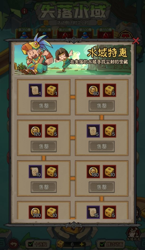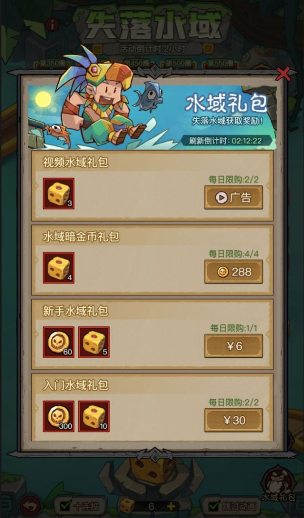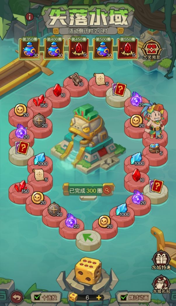 使用失落骰子進行投擲,根據(jù)擲出的點數(shù)前進相應(yīng)格數(shù),到達格子停下后即可獲取該格子上的獎勵,同時該格子的等級會得到提升(六個點數(shù)的投擲概率均等)