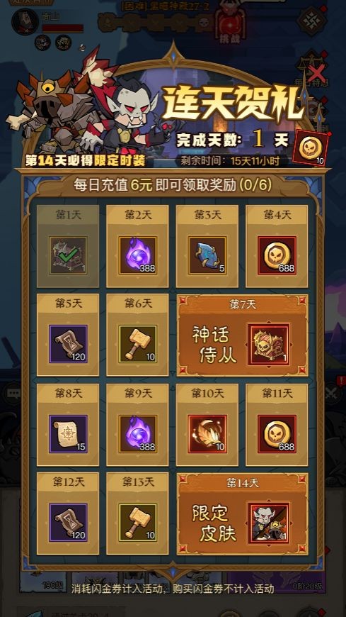 在連天賀禮活動進行期間,每天充值金額達到6元,就能領(lǐng)取一次獎勵。