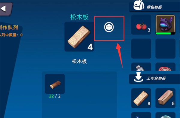 松木板制作完成后,點擊該圖標(biāo)即可把加工好的松木板收入背包