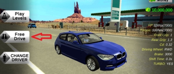 首先第一步,我們點(diǎn)擊游戲里的“free drive”按鈕,這個(gè)按鈕對(duì)應(yīng)的中文意思是“自由駕駛”。