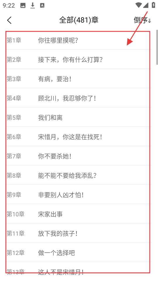 進入書籍詳情頁后,點擊【目錄】按鈕,就能進入章節列表頁面,查看這本書的各個章節內容啦。