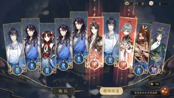 給新手小伙伴的抽卡福利里有新手十連,前十次抽卡一定會得到SSR左丘肅,前二十次抽卡必然能獲得UR角色,這些新手福利在抽完對應次數之后就不再有了。