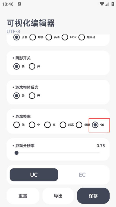 3、進(jìn)入可視化編輯器還可以對(duì)游戲的幀率進(jìn)行修改,比如解鎖90高幀率