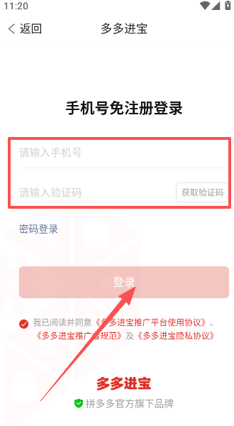 請(qǐng)安裝多多進(jìn)寶,使用手機(jī)號(hào)完成注冊(cè)與登錄操作,隨后進(jìn)行實(shí)名認(rèn)證并綁定銀行卡,這樣后續(xù)就可以順利提現(xiàn)傭金了。