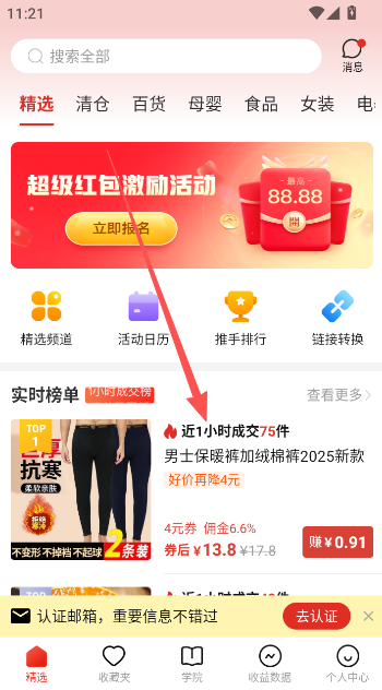 軟件首頁(yè)精選了可賺取傭金的下單商品,大家可依據(jù)自己對(duì)傭金比例的估算來(lái)下單購(gòu)買(mǎi)。