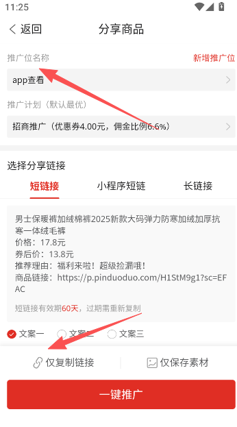 ID:wx32540bd863b27570關(guān)聯(lián)完成后,若需跳轉(zhuǎn)到詳情頁(yè),可按照以下內(nèi)容進(jìn)行操作:調(diào)用pdd.ddk.goods.promotion.url.generate接口(即多多進(jìn)寶推廣鏈接生成接口)。