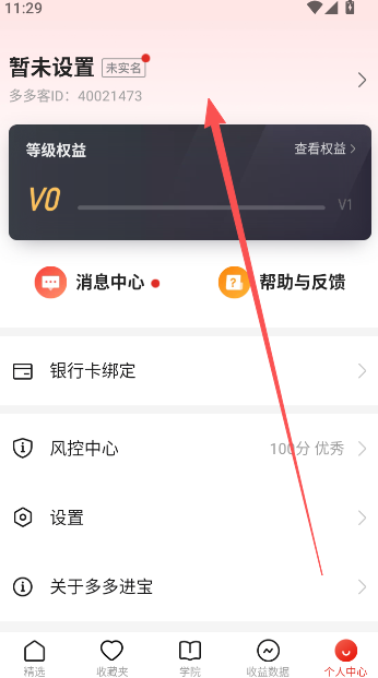 在個(gè)人中心點(diǎn)擊上方設(shè)置欄目。