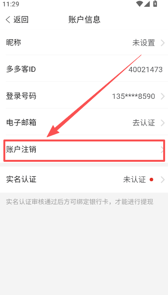在賬戶信息頁(yè)面,點(diǎn)擊賬戶注銷(xiāo)。