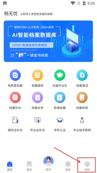 在檔無憂首頁,點擊底部的【我的】圖標,就能進入個人中心頁面,完成登錄等相關操作。