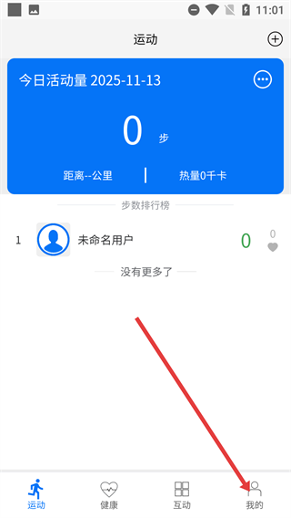 在運動頁面,點擊底部的【我的】選項,就能進入個人中心頁面,在這里可以查看用戶信息以及各類功能的入口。