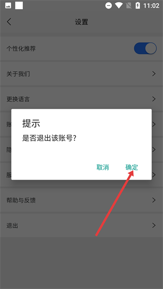 進入設(shè)置頁面后,點擊【退出】按鈕,系統(tǒng)會彈出確認是否退出賬號的提示框。