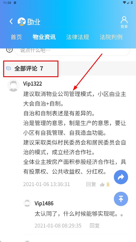 在資訊詳情頁面,您可以通過查看【全部評論-評論板塊】,來了解用戶們針對該資訊展開的討論內容。