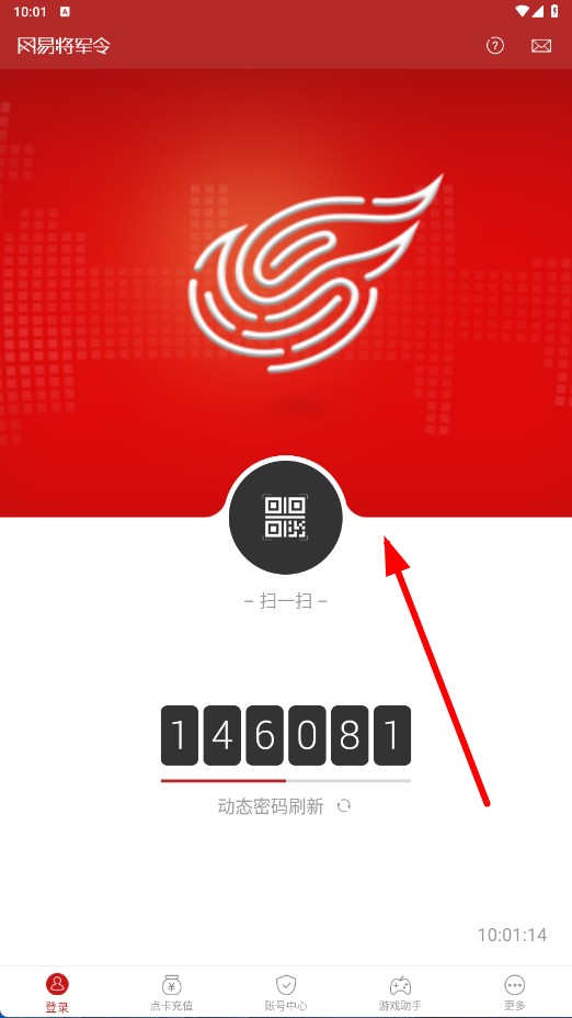 驗證通過后,進入網易將軍令主頁面,既能查看動態密碼,也能使用【掃一掃-功能按鈕】。