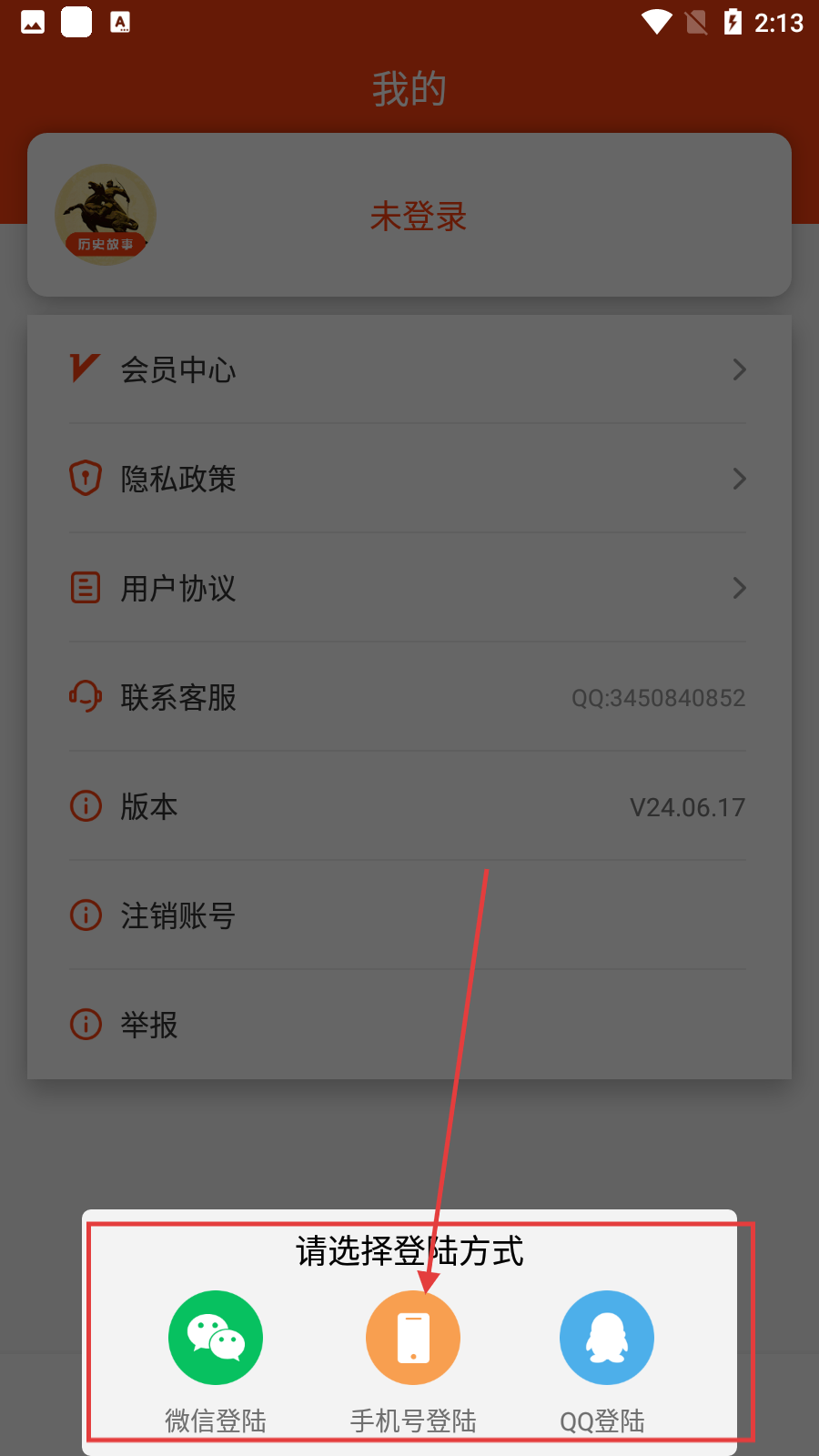 在登錄界面,用戶能夠選擇通過微信、手機號或者QQ進行登錄,一旦選定手機號登錄的方式,系統就會跳轉至對應的登錄流程。