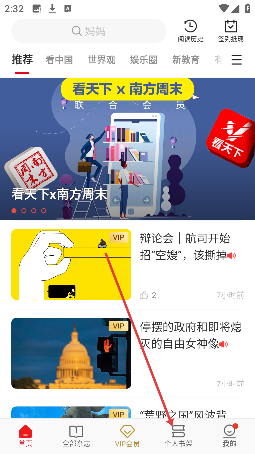 點擊【個人書架】選項,進入對應的個人書架頁面后,即可查看已收藏的期刊。